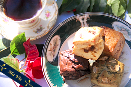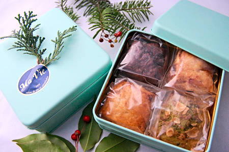マヴィ手作りスコーン4種がひとつの缶に入ったスコーン缶と紅茶「ショコラオランジェ・ド・ノエル」のセット